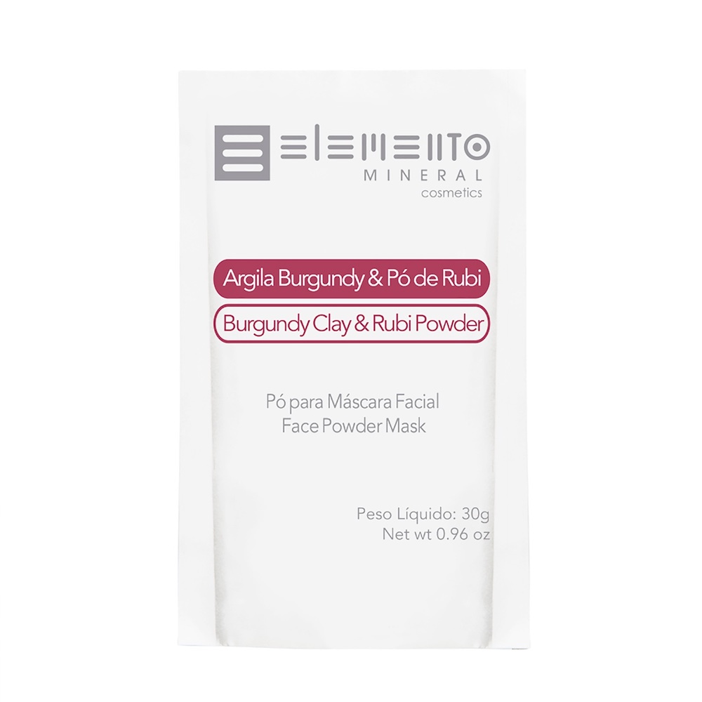 A Argila Burgundy (vermelho intenso), possui altos teores de Ferro e sua coloração vermelho intenso deve-se à presença de Hematita, responsável por seus efeitos depurativos e revitalização geral da pele. Os minerais presentes nesta argila atuam estimulando a produção de colágeno. Combinada com o Pó de Rubi, possui efeito dinamizante. O resultado é uma pele saudável, aveludada e radiante. Promove efeito tensor, melhora a elasticidade. O Pó de Rubi tem efeito oxigenante e aumenta a circulação sanguínea