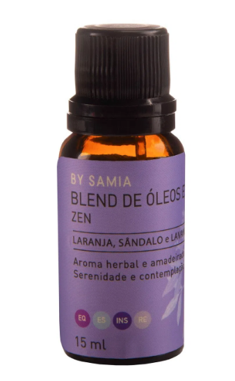 Blend de óleos essenciais Zen possui em sua composição os óleos de Sândalo, Petigrain, Laranja e Lavanda.