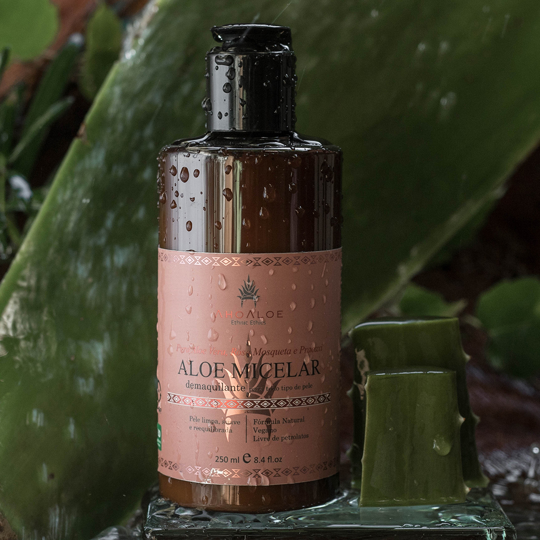 Essa loção é um verdadeiro balé de pequenas micelas trabalhando de maneira árdua para remover a maquiagem e impurezas da pele em conjunto com o puro gel de aloe vera orgânica, de cultivo próprio, hidratando e acalmando os tecidos.