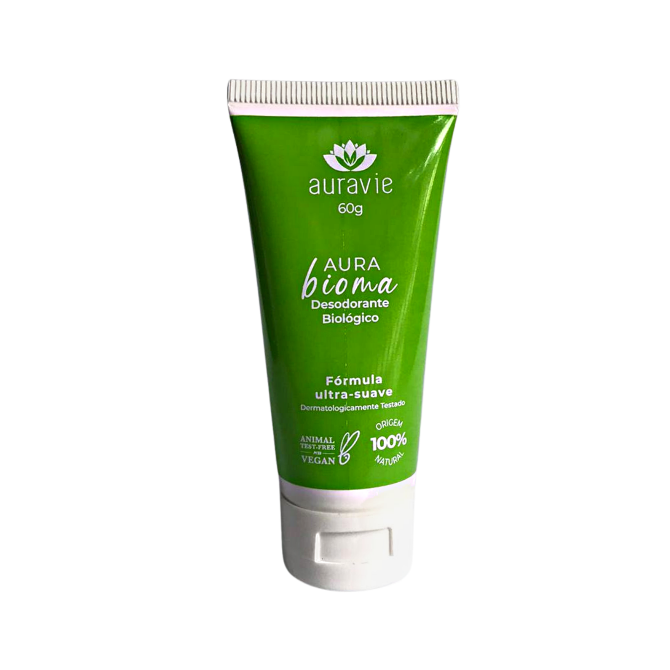 Desodorante 100% natural e vegano feito com prebióticos, enzimas vegetais e extrato de Aloe Vera, Karité e Vitamina E.